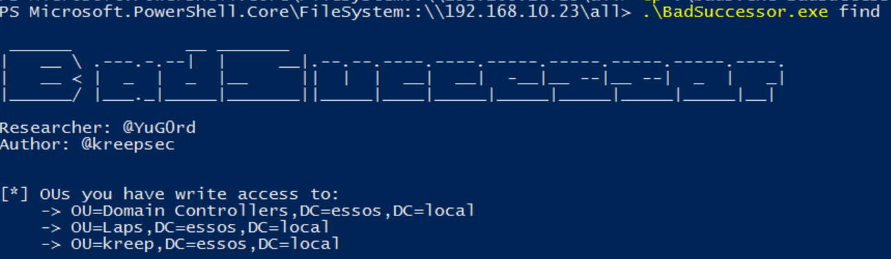find command shows OUs we can write toIn this case, I created a vulnerable OU named kreep and we will be targetting that one.