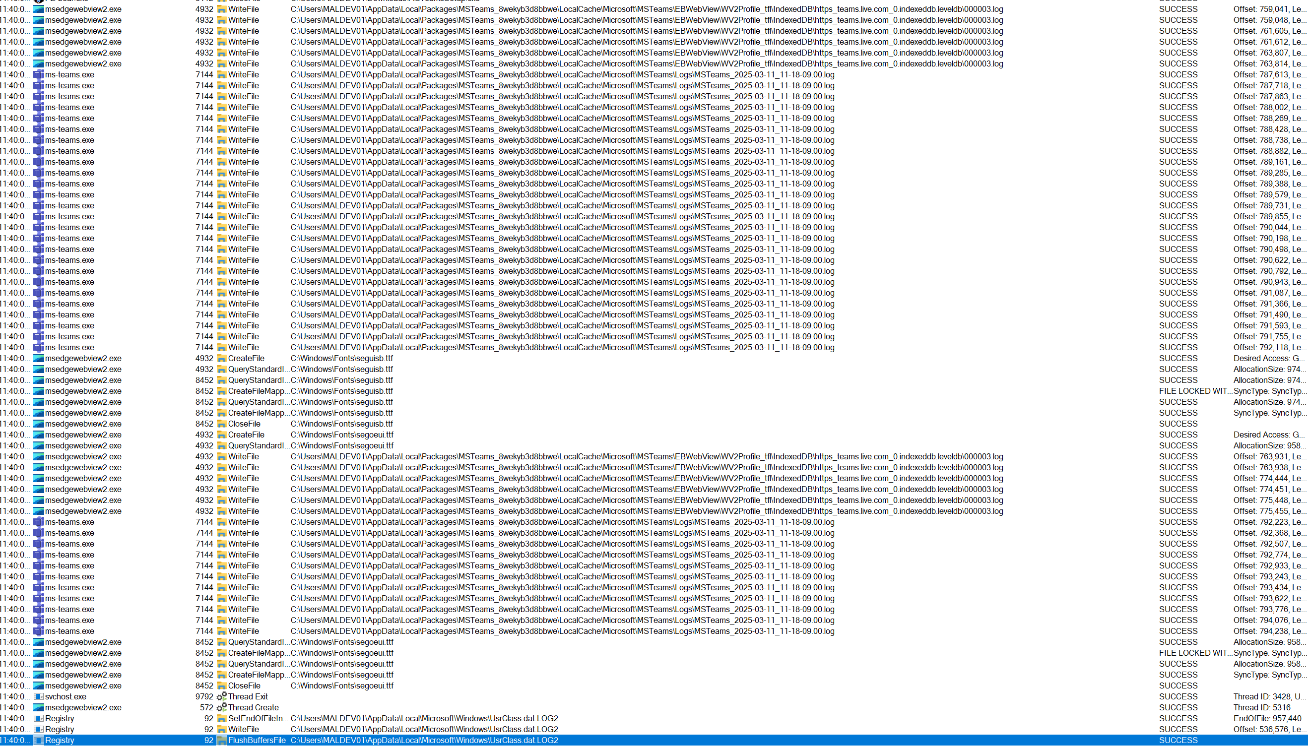 By monitoring msedgewebview2.exe, I confirmed that it was responsible for updating chat messages and other UI elements. The next step was to determine how to selectively halt message rendering without freezing the entire UI.